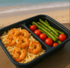 Meal Prep-Grilled Shrimp, pasta, with roasted Asparagus and cherry tomatoes